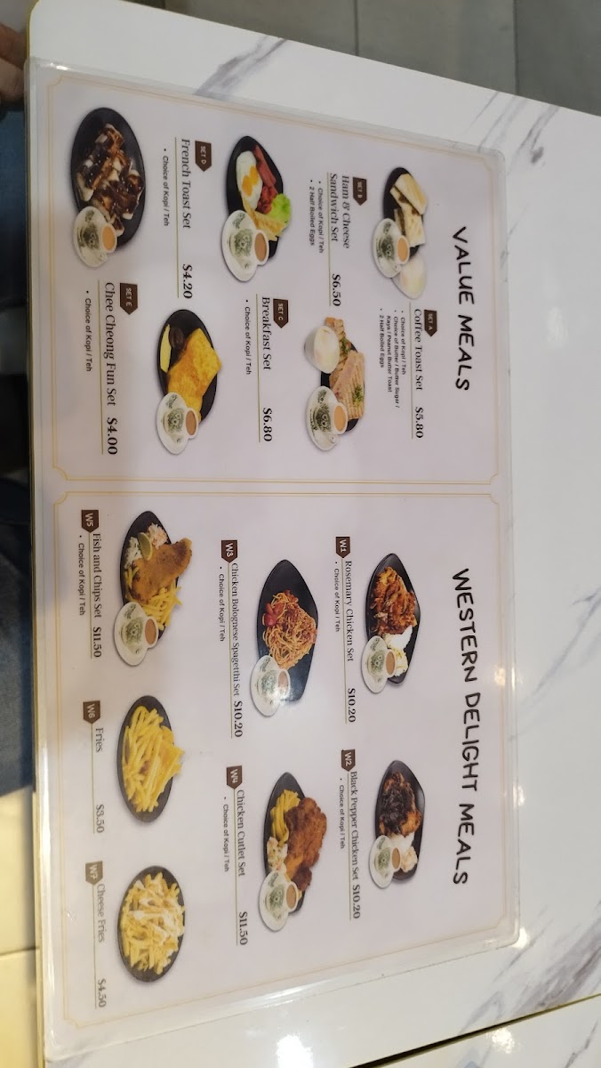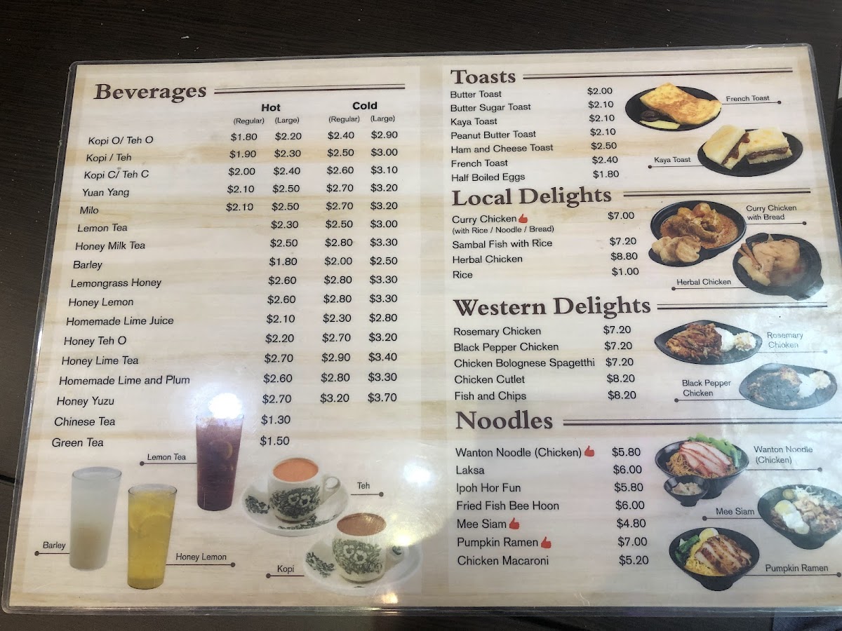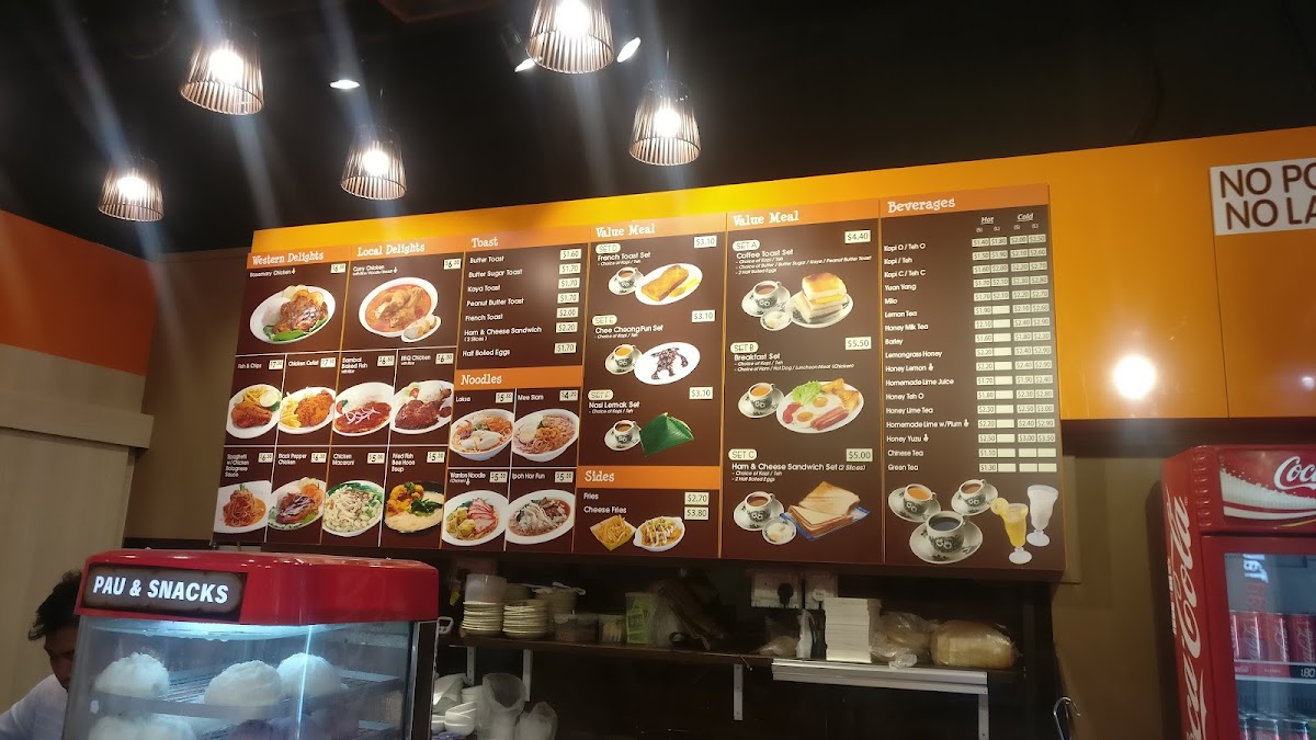 - Beverages: Coffee-based drinks are available, including local styles like Kopi O Telok Siu Dai, providing traditional coffee flavors typical of a local cafe environment.